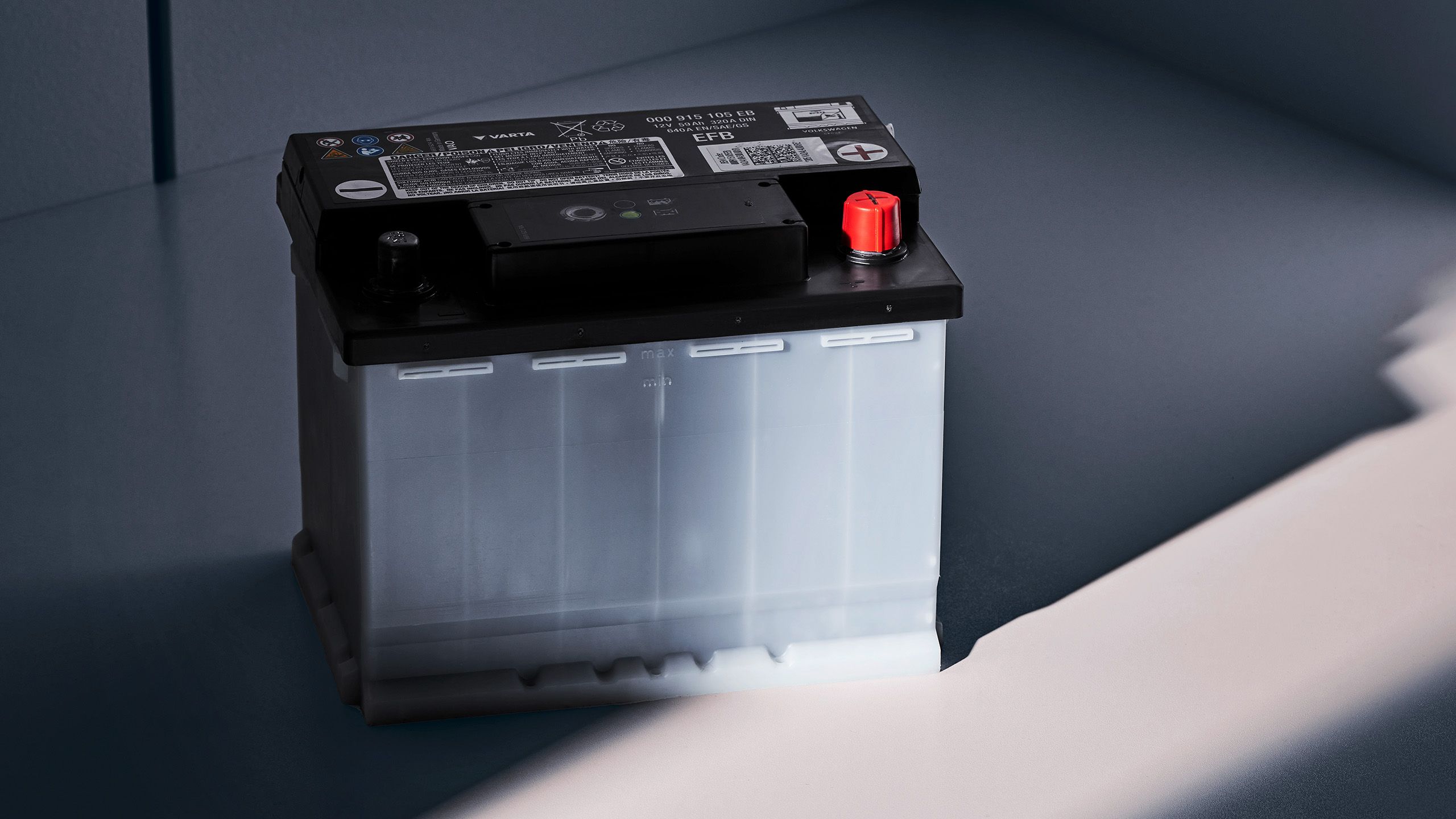 ID.-jét új, technológiailag továbbfejlesztett 12 voltos akkumulátorral szereljük fel. A kisebb belső ellenállásnak és az elektrolit jobb tulajdonságainak köszönhetően ez az akkumulátor még robusztusabb és hosszabb élettartamú.