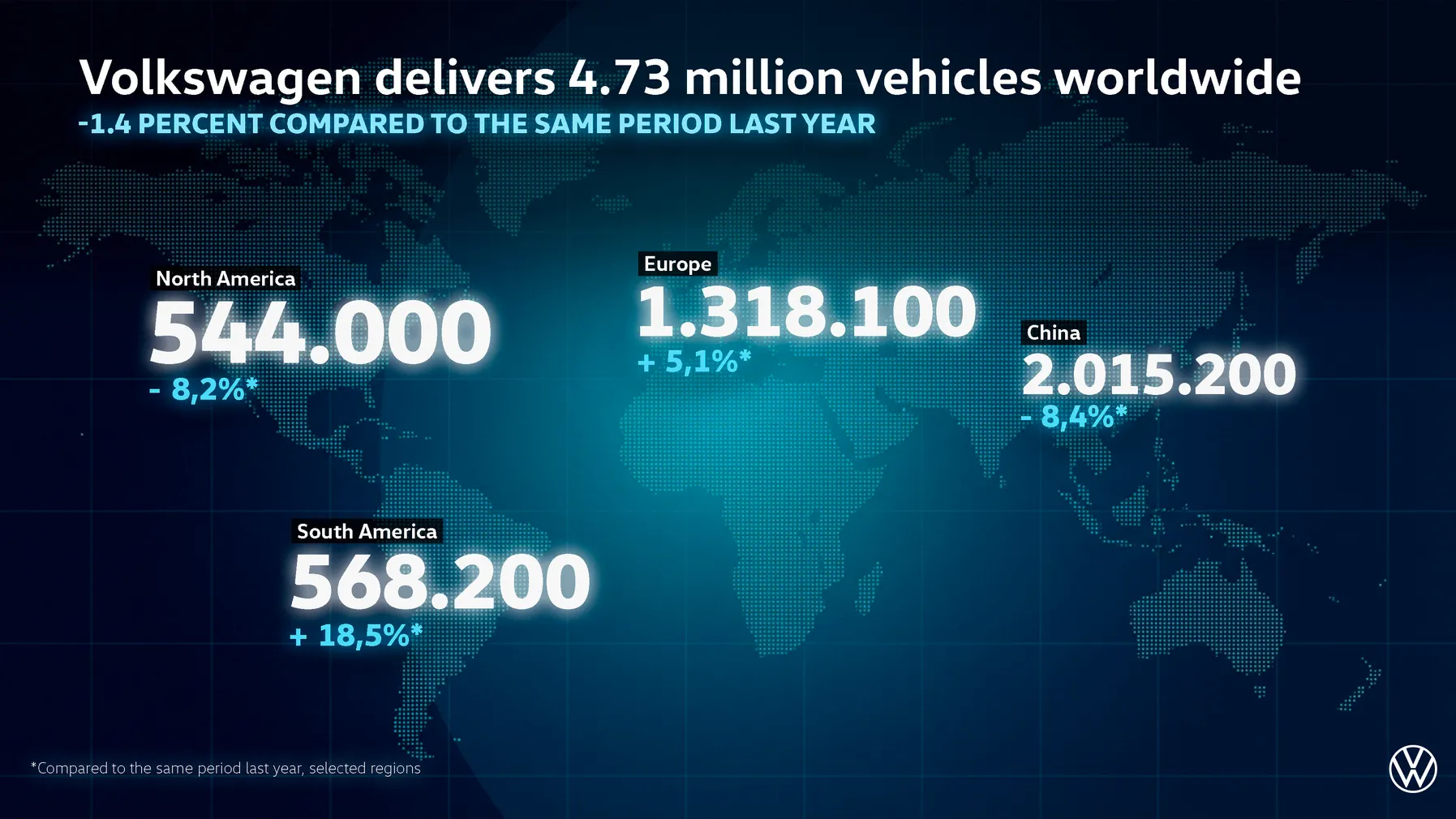 A Volkswagen márka az elmúlt évben világszerte mintegy 4,73 millió járművet adott át ügyfeleinek. Ezzel az átadások a kihívást jelentő piaci körülmények ellenére is csaknem megőrizték az előző évi szintet (-1,4 százalék). Miközben az átadások különösen Európában (+5,1 százalék) és Dél-Amerikában (+18,5 százalék) kedvezően alakultak, a piaci környezet Kínában (-8,4 százalék) továbbra is kihívást jelentett. Az USA-vámok Észak-Amerikában is érezhetően hatottak az átadásokra (-8,2 százalék).