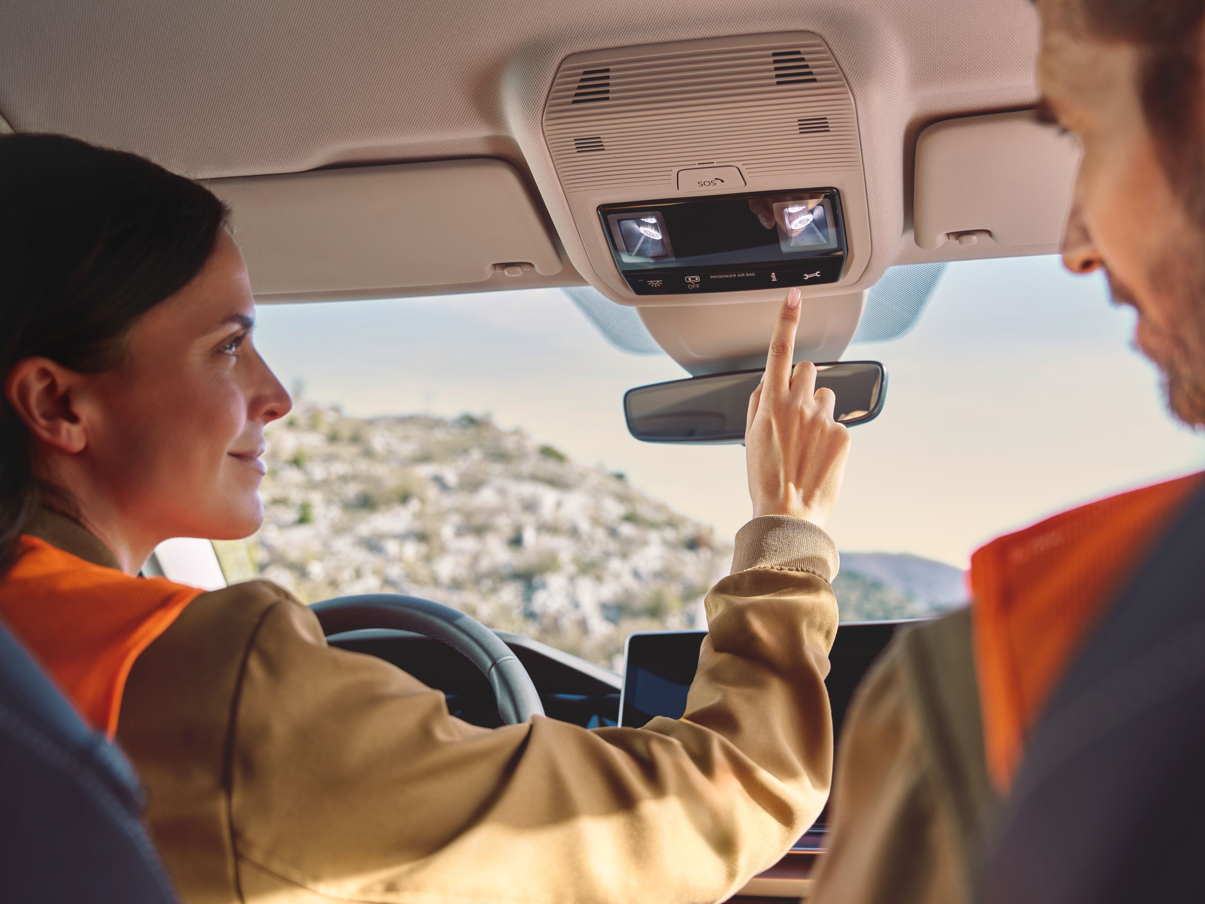 Ha megnyomja a tetőkárpit billentyűzetmoduljában található villáskulccsal ellátott gombot, akkor a gépkocsiján keresztül csatlakozik a Volkswagen segélyszolgálatához – szakszerű segítségért műszaki meghibásodások és balesetek esetén. Ezzel egyidejűleg a sürgősségi segítségnyújtáshoz szükséges összes adatot továbbítjuk, és az eset feldolgozásához rendelkezésre állnak. Az online segélyhívás használatának egyetlen feltétele az aktív Volkswagen felhasználói fiók. Ha még nem rendelkezik felhasználói fiókkal, regisztrálhat a myVolkswagen oldalon. A jármű tetőkárpitján lévő többi szimbólum jelentése: